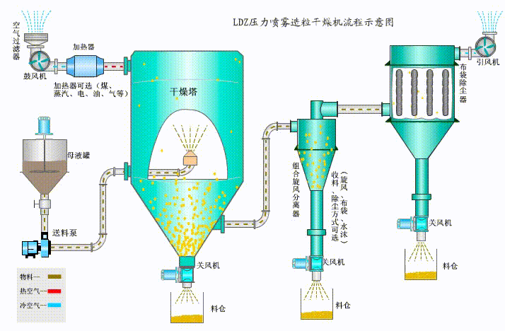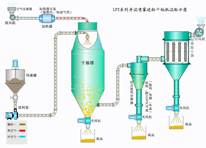 3、使用范圍廣,可進行熱風干燥、造粒、也可以進行冷卻造粒、噴霧結晶、噴霧反應等;